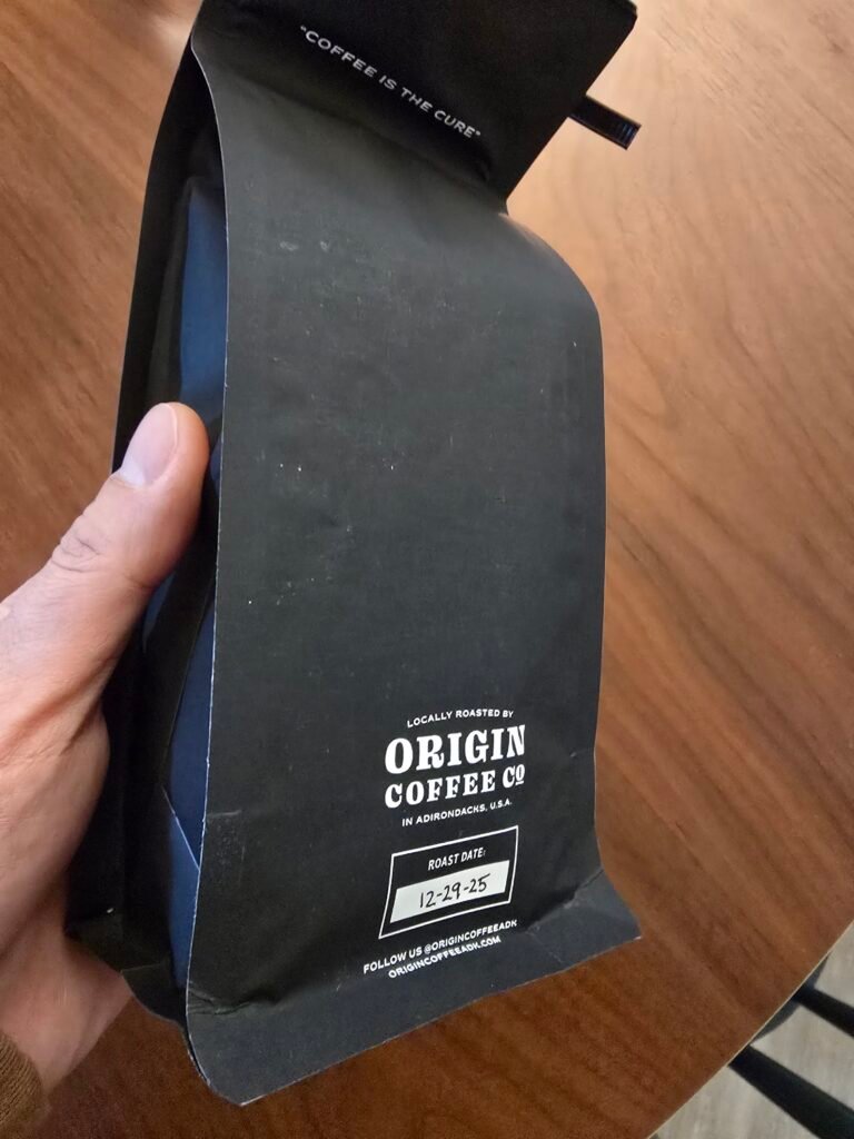 A friend of mine stopped by unexpectedly. He didn’t stay long—just a quick two-minute conversation to say “Happy New Year”—but he didn’t come empty-handed. He had just returned from a trip to the Adirondacks and, knowing how much I love coffee, he picked up a bag from Origin Coffee Co. specifically for me.